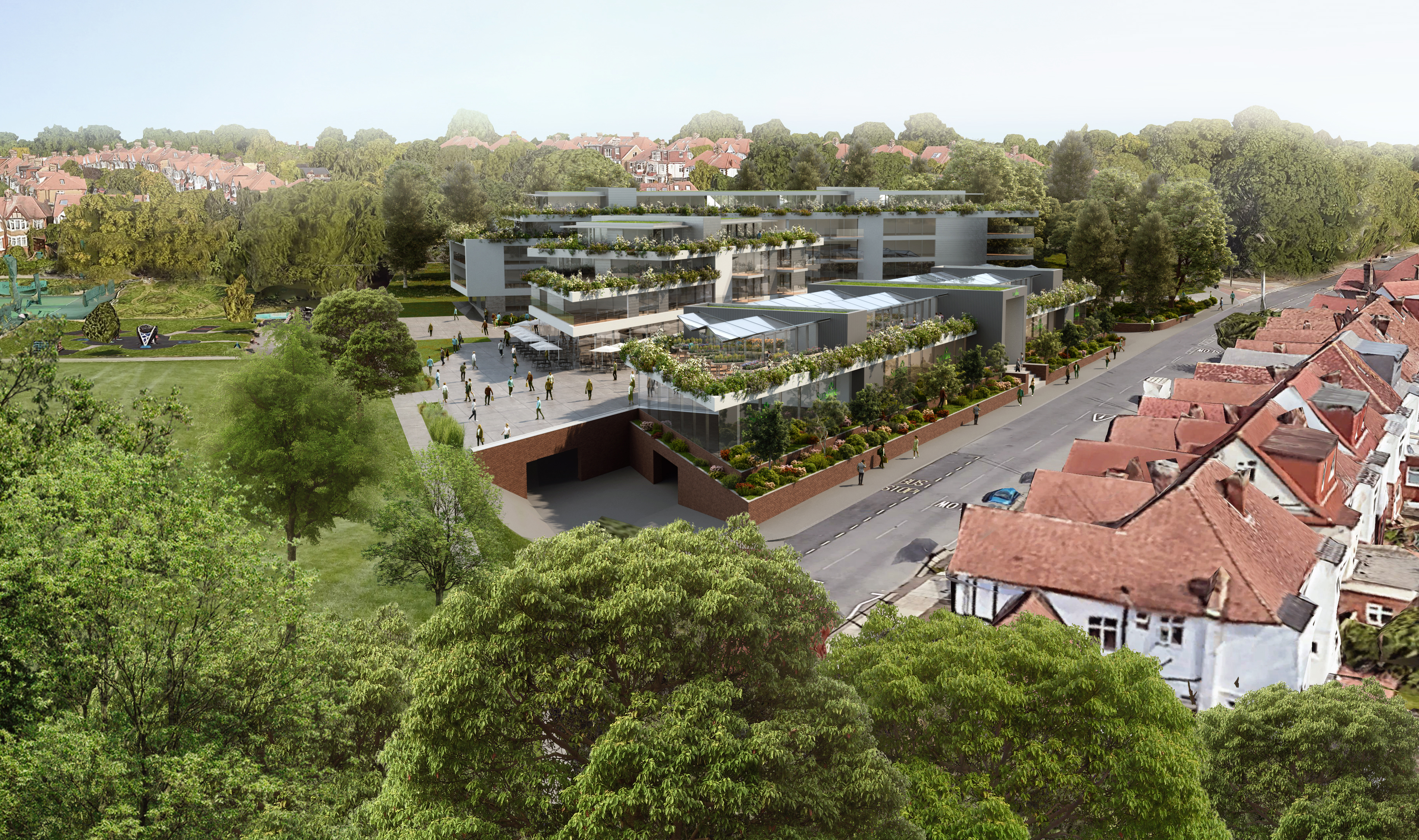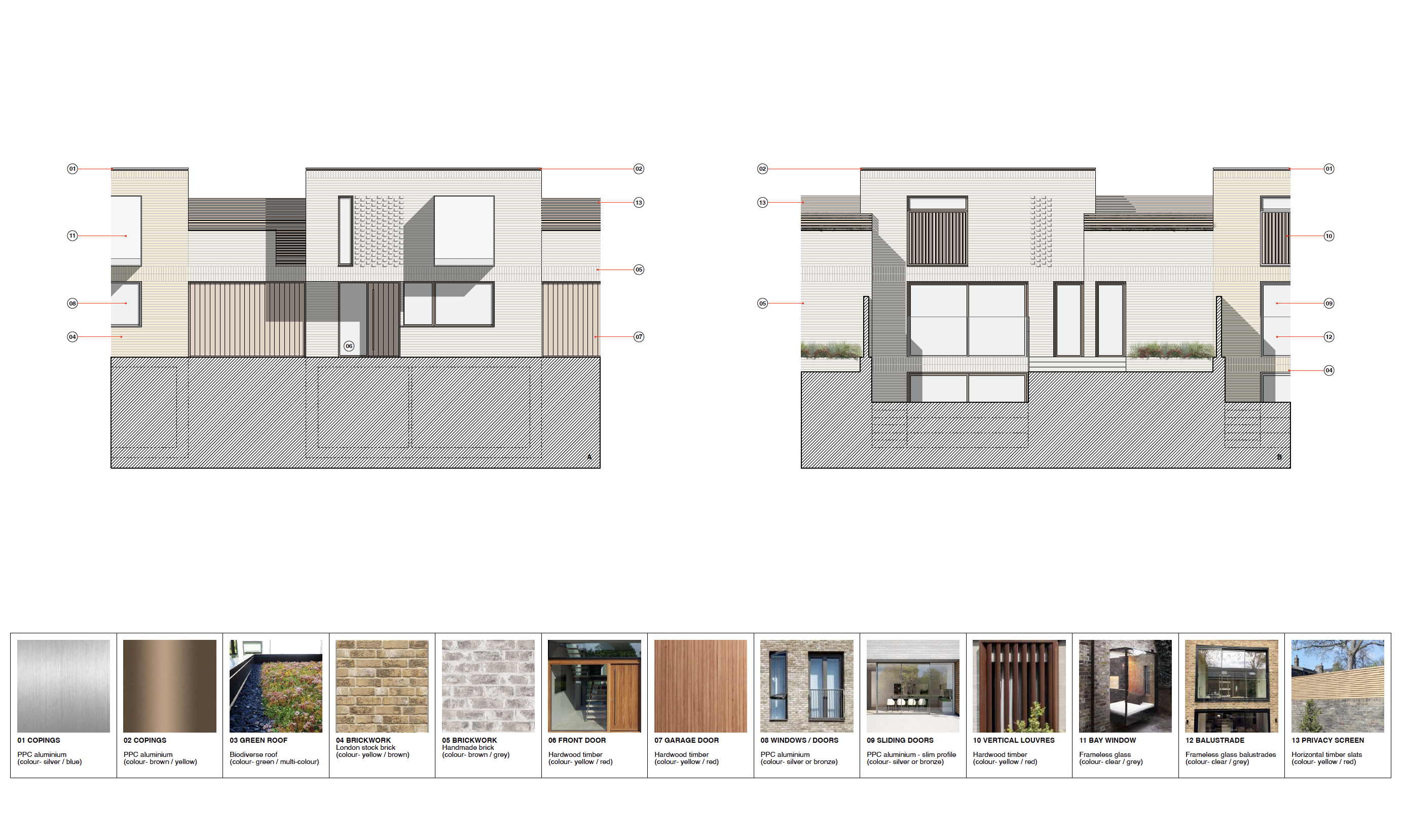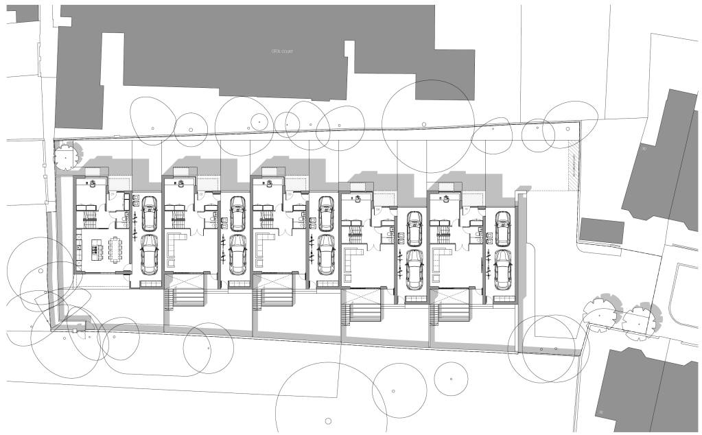 Providing 5 spacious family homes with generous external spaces including a first floor terrace and a split level rear garden, the accommodation is arranged over 3 floors including a basement with an integrated garage for 2 cars. Materials reflect the many and varied surroundings with a London Stock brick under a green sedum-roof. The bio-diversity net gain for the site has been improved by 127% according to the assessment completed as part of the application.